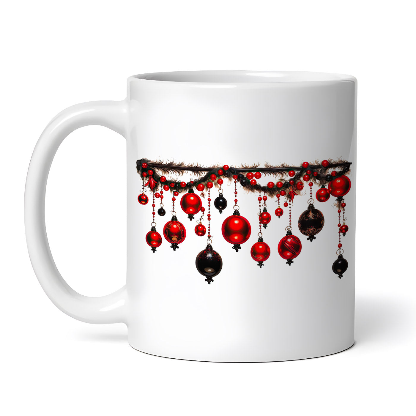 Cana ceramica, Ghirlanda de globuri rosii si negre, NO6428, 330 ml, Multicolor