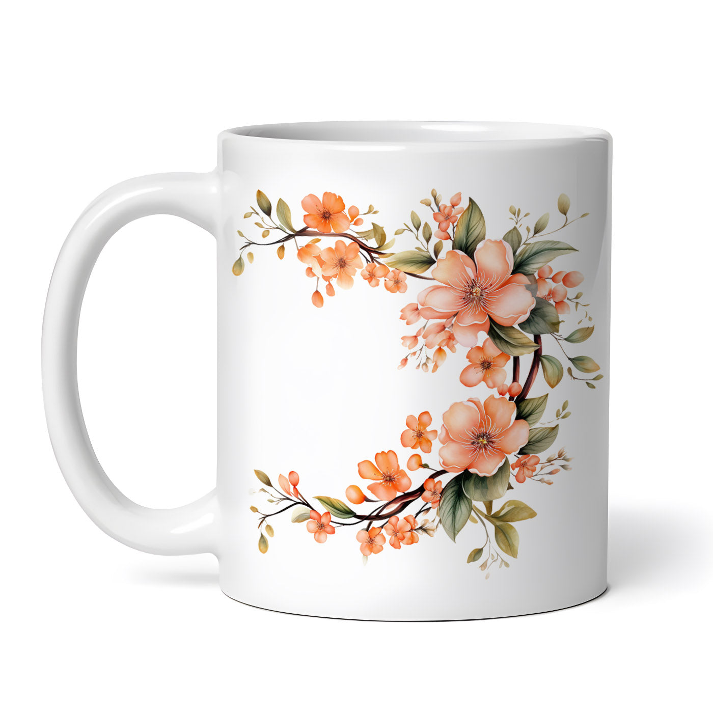 Cana ceramica, Ghirlanda din flori de piersic, NO1254, 330 ml, Multicolor