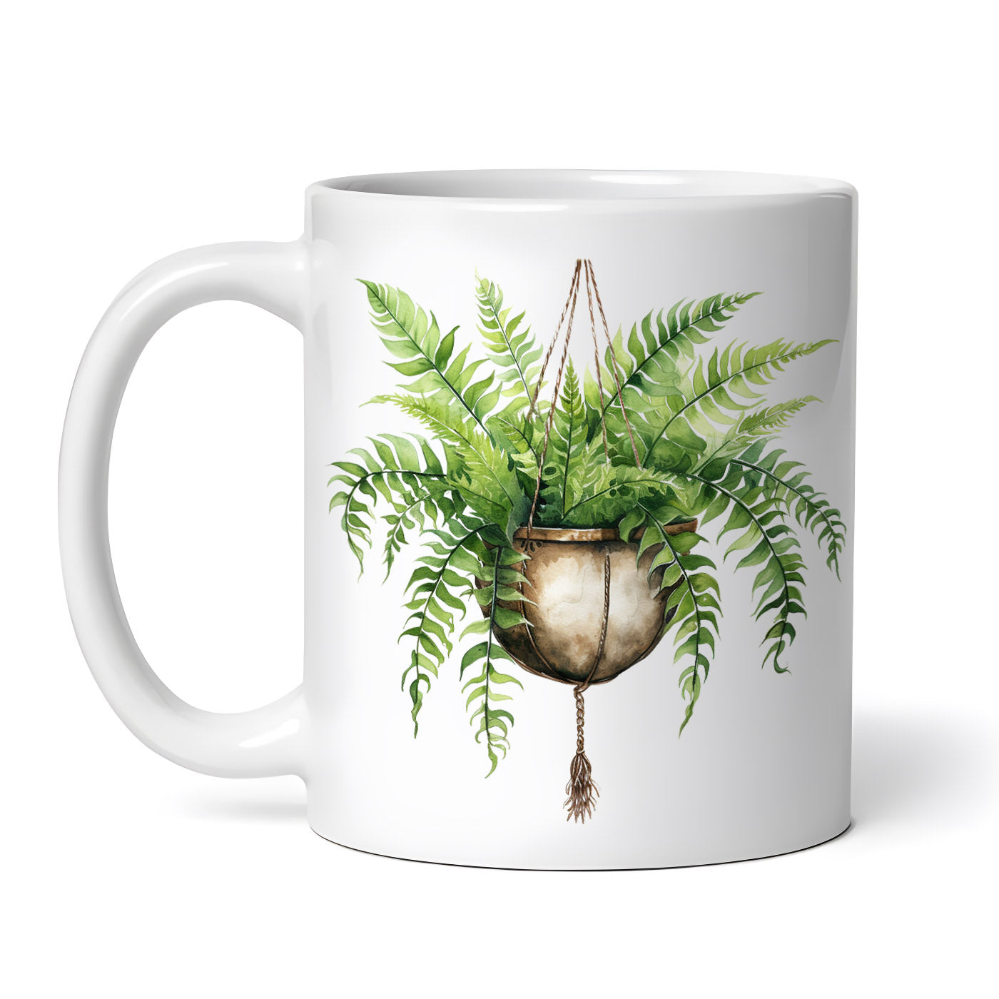 Cana ceramica, Ghiveci ceramic cu feriga agatat, NO2226, 330 ml, Multicolor