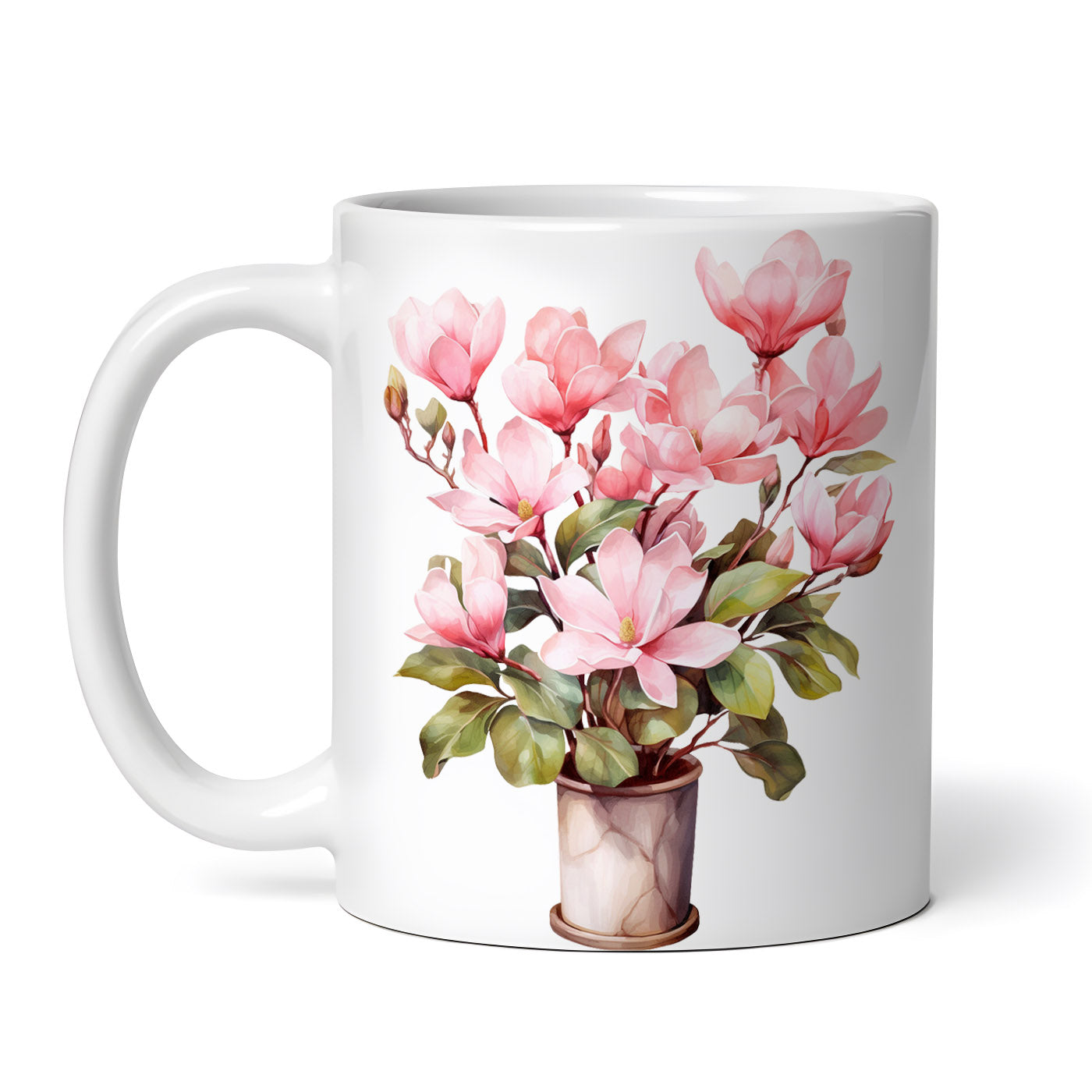 Cana ceramica, Ghiveci cu magnolii, NO1943, 330 ml, Multicolor