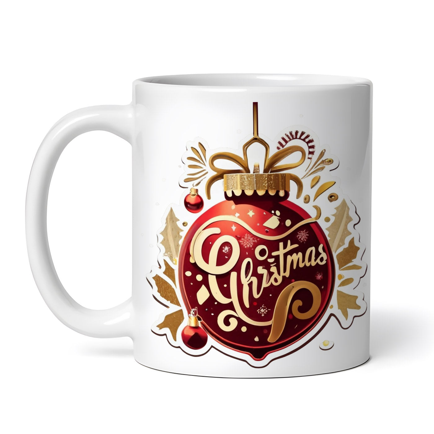 Cana ceramica, Glob rosu christmas, NO166, 330 ml, Multicolor