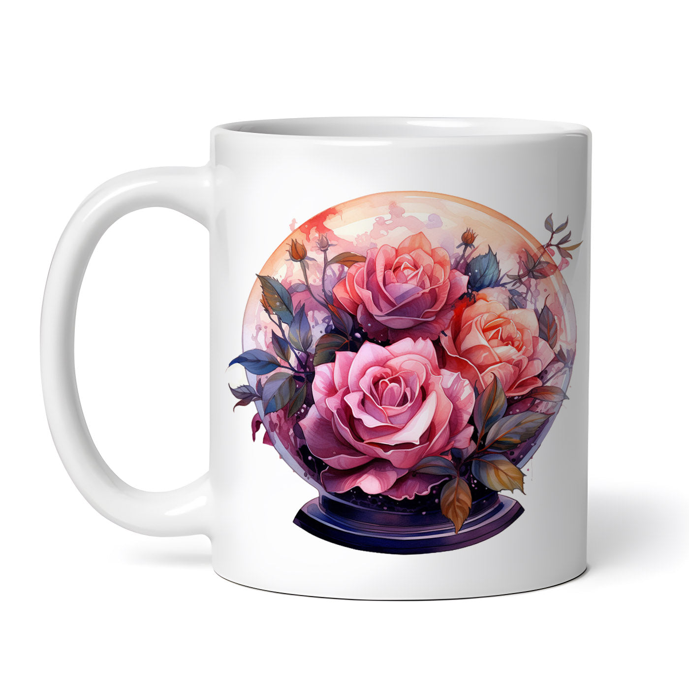 Cana ceramica, Globul de cristal cu trandafiri portocalii, NO3574, 330 ml, Multicolor