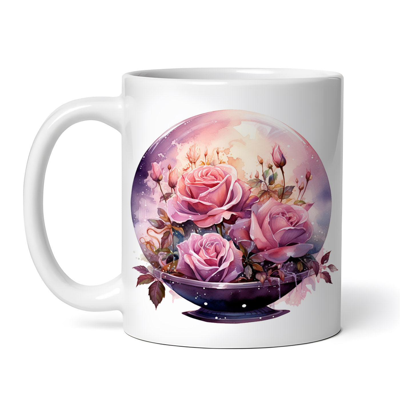 Cana ceramica, Globul de cristal cu trandafiri roz, NO2844, 330 ml, Multicolor
