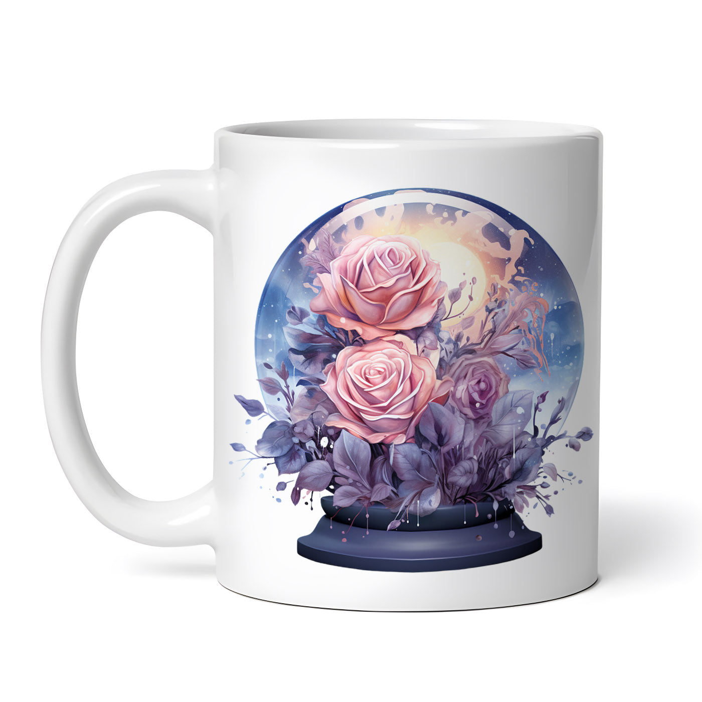 Cana ceramica, Globul de cristal Noapte cu trandafiri, NO598, 330 ml, Multicolor