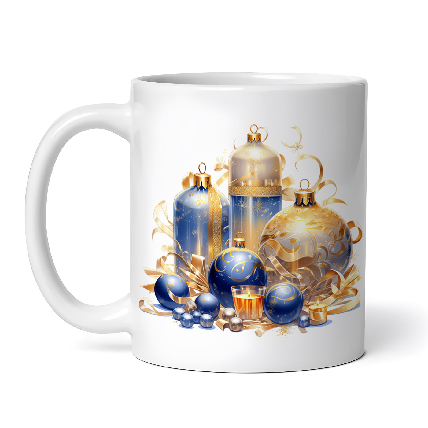 Cana ceramica, Globuri si lumanari de craciun, NO3555, 330 ml, Multicolor