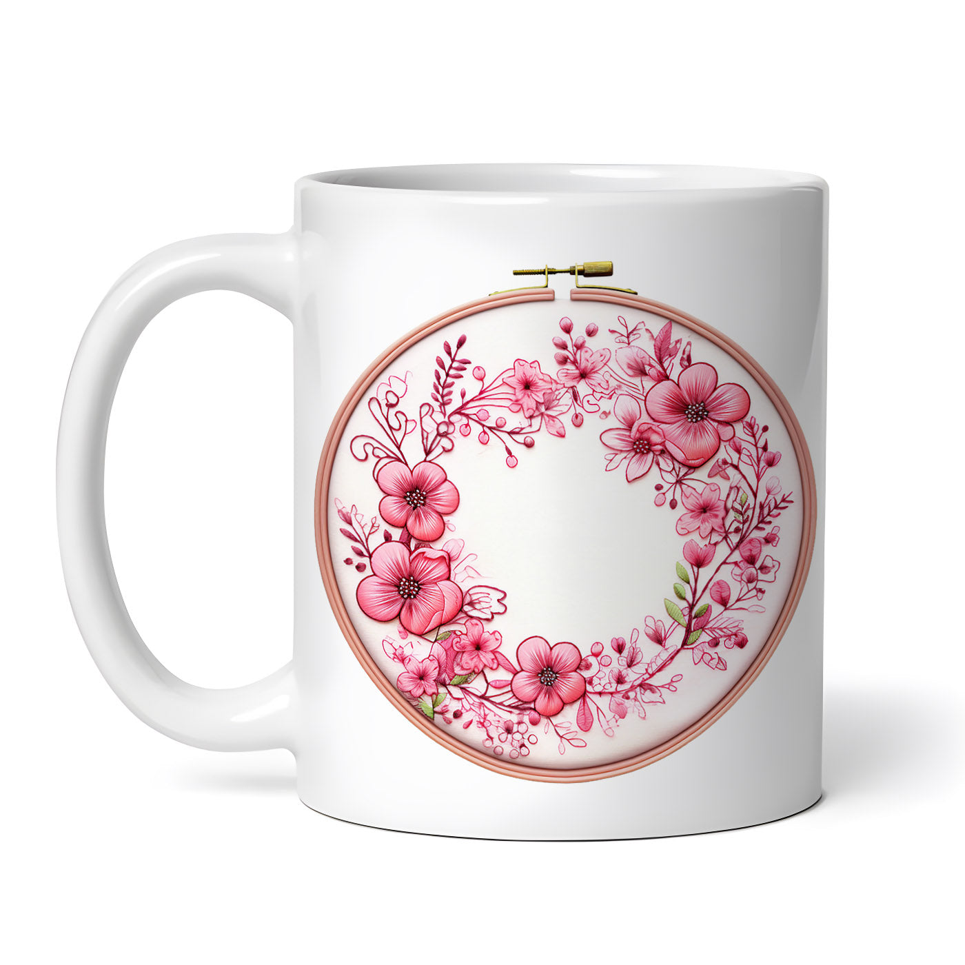 Cana ceramica, Goblen cu flori roz, NO5135, 330 ml, Multicolor