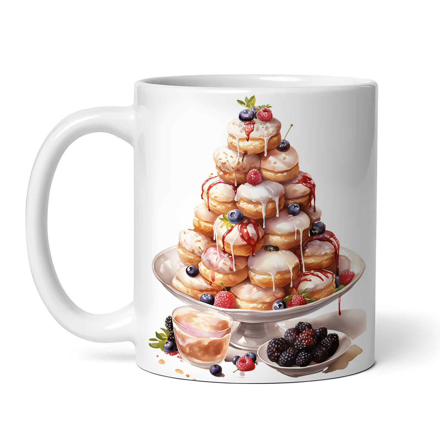 Cana ceramica, Gogosi cu glazura si fructe, NO1048, 330 ml, Multicolor