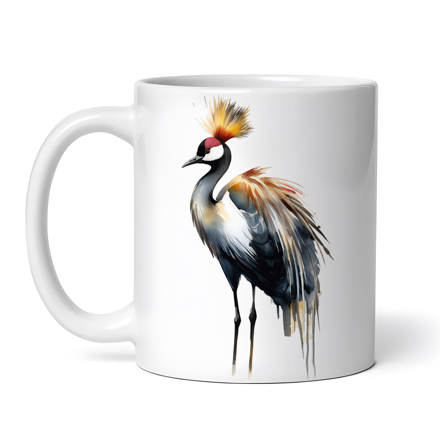 Cana ceramica, Grey crowned crane, NO1786, 330 ml, Multicolor