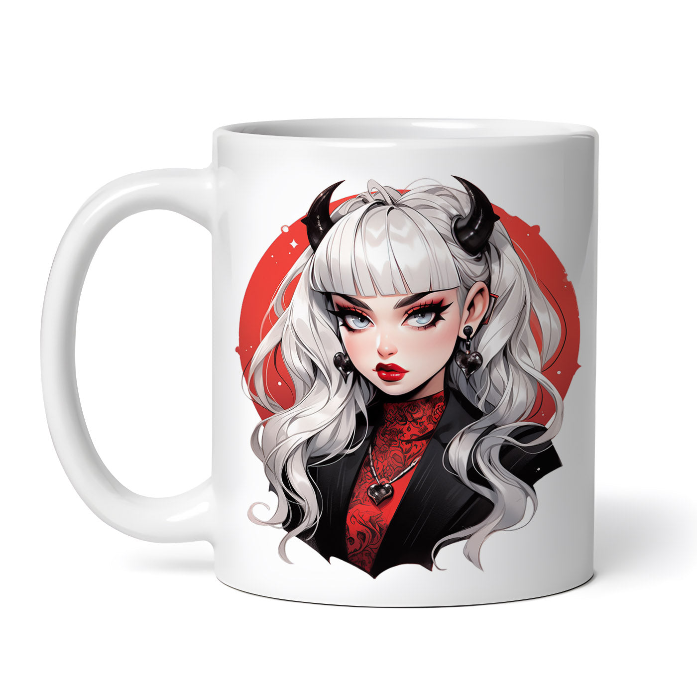 Cana ceramica, Halloween Diavolita platinata cu cercei inimioare, NO4022, 330 ml, Multicolor