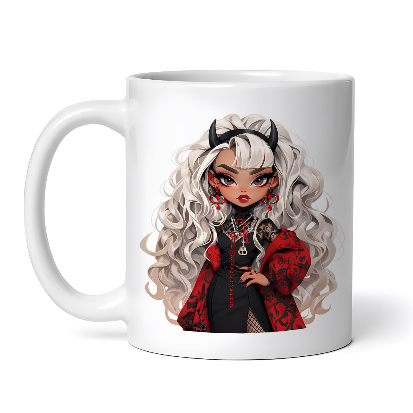 Cana ceramica, Halloween Diavolita platinata, NO4133, 330 ml, Multicolor