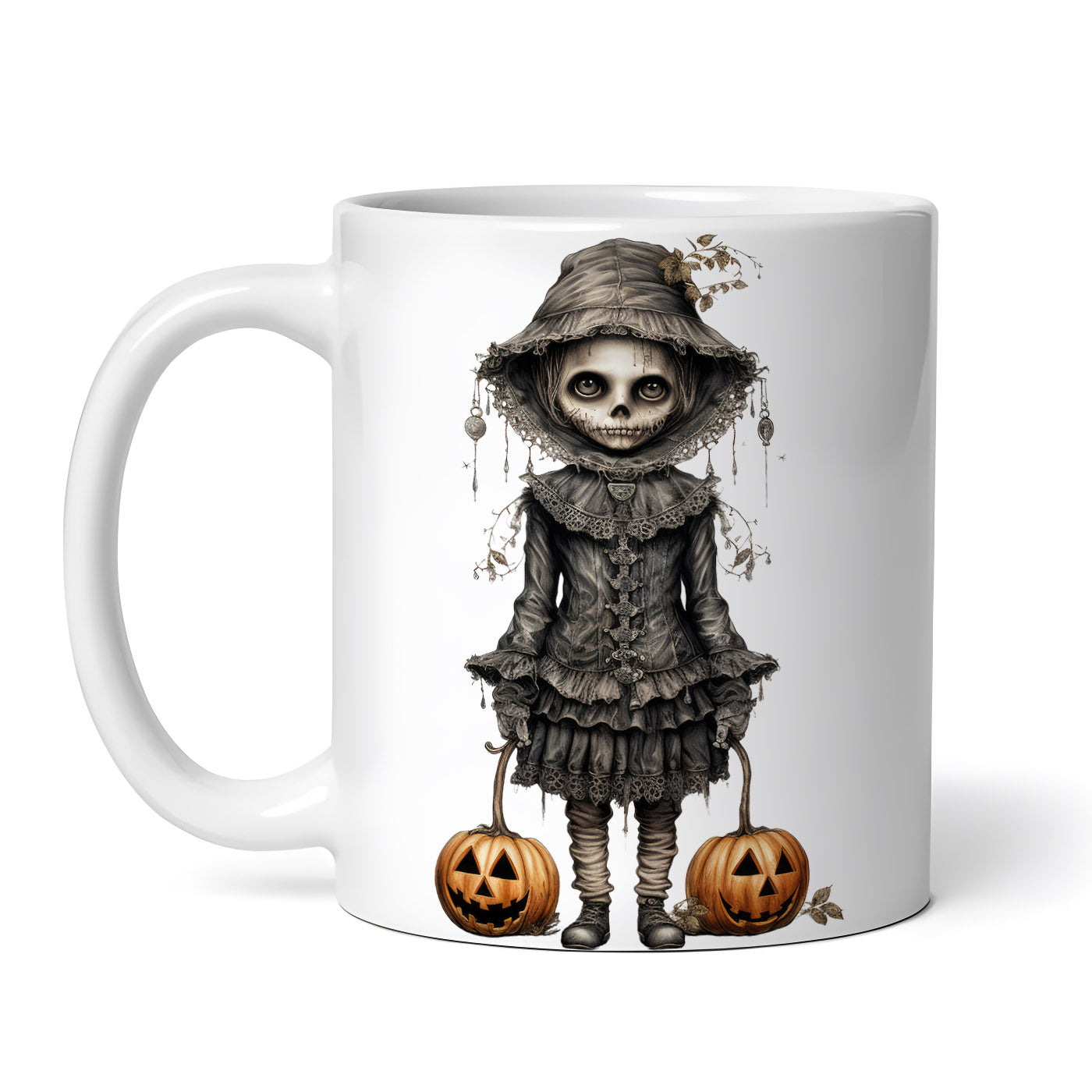 Cana ceramica, Halloween fata zombi cu dovleci, NO2793, 330 ml, Multicolor
