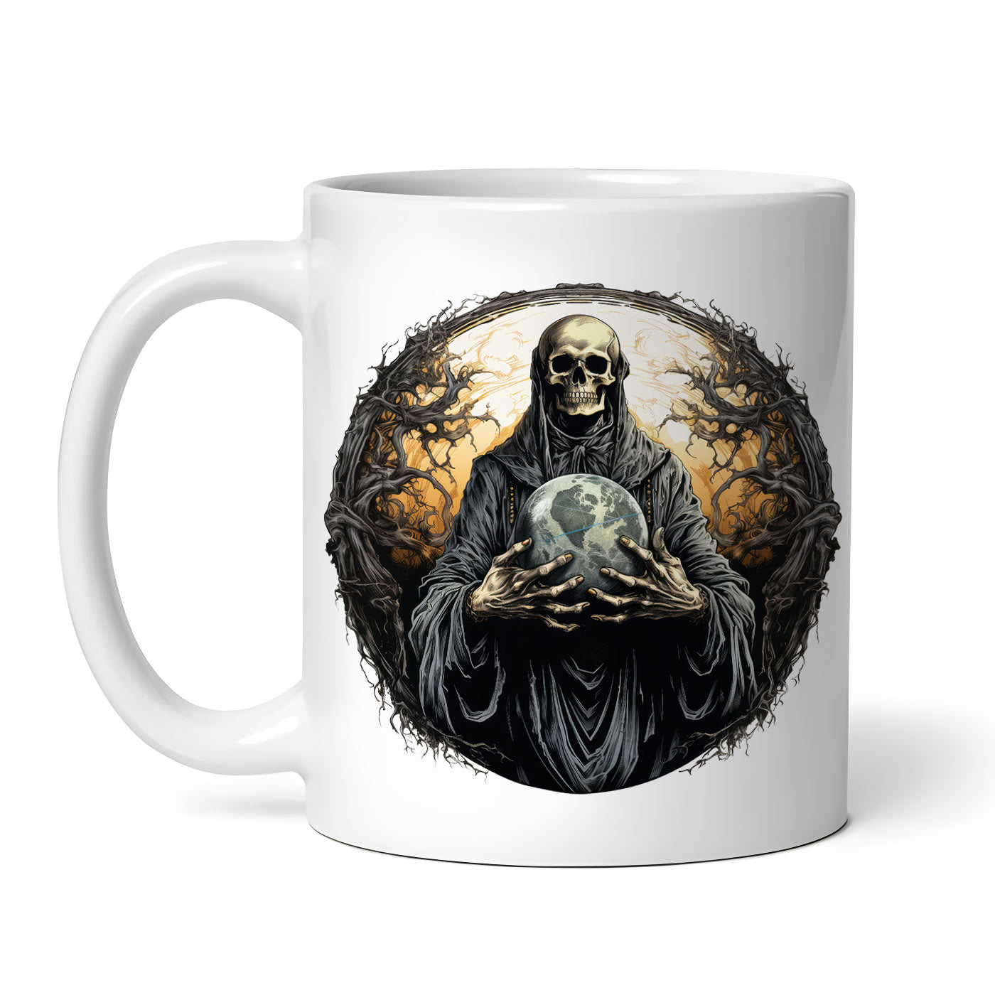 Cana ceramica, Halloween moartea cu globul pamantesc, NO6118, 330 ml, Multicolor
