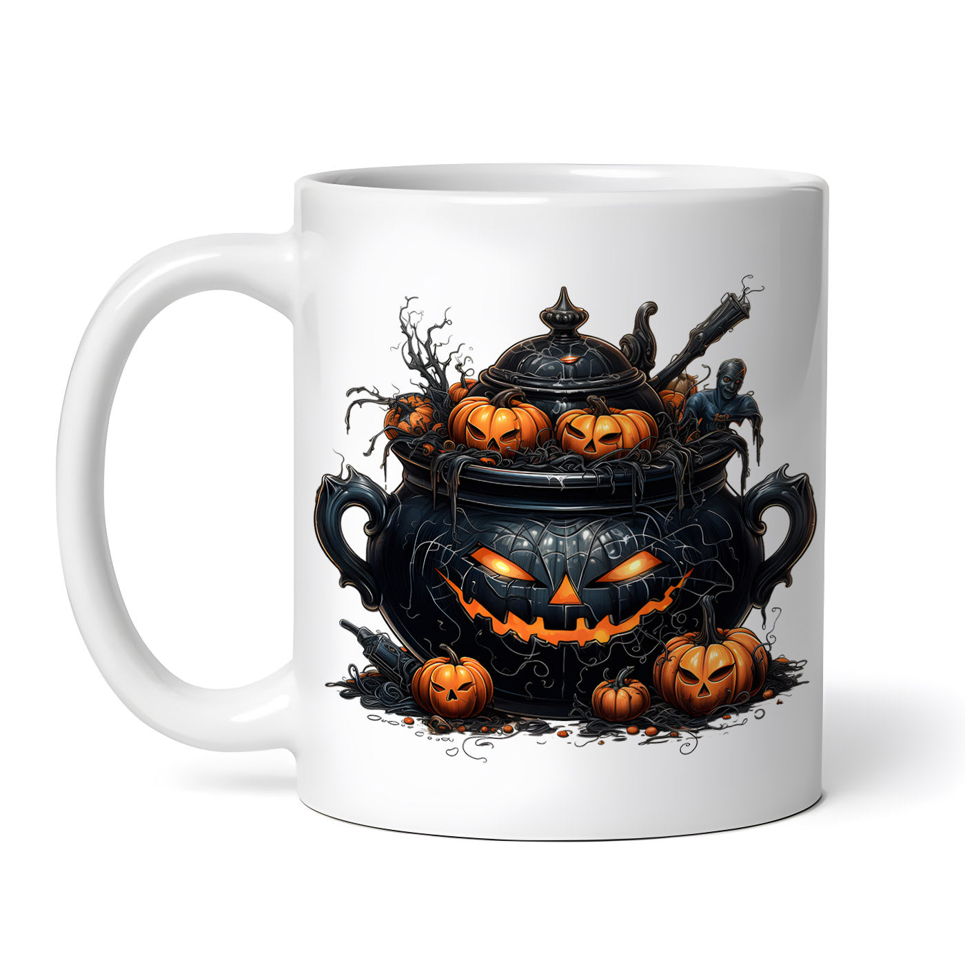 Cana ceramica, Halloween Oala magica din dovleac negru, NO986, 330 ml, Multicolor