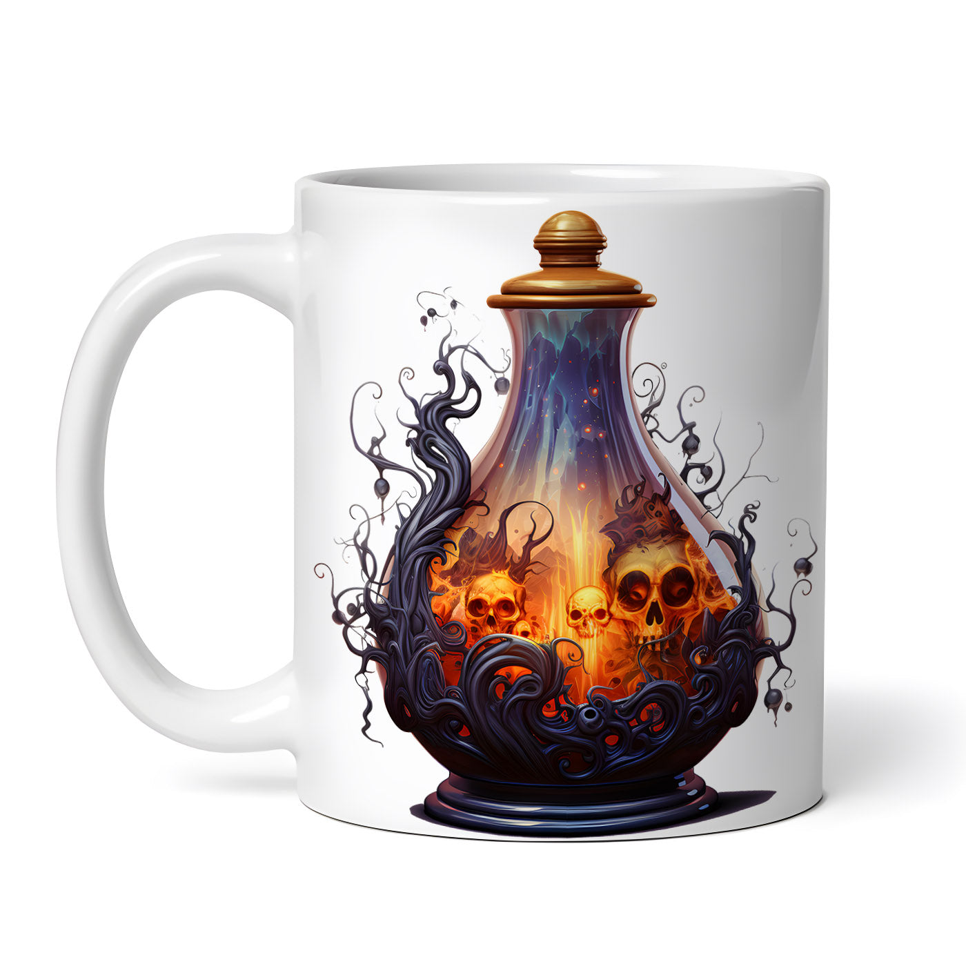 Cana ceramica, Halloween Sticla cu cranii, NO4244, 330 ml, Multicolor