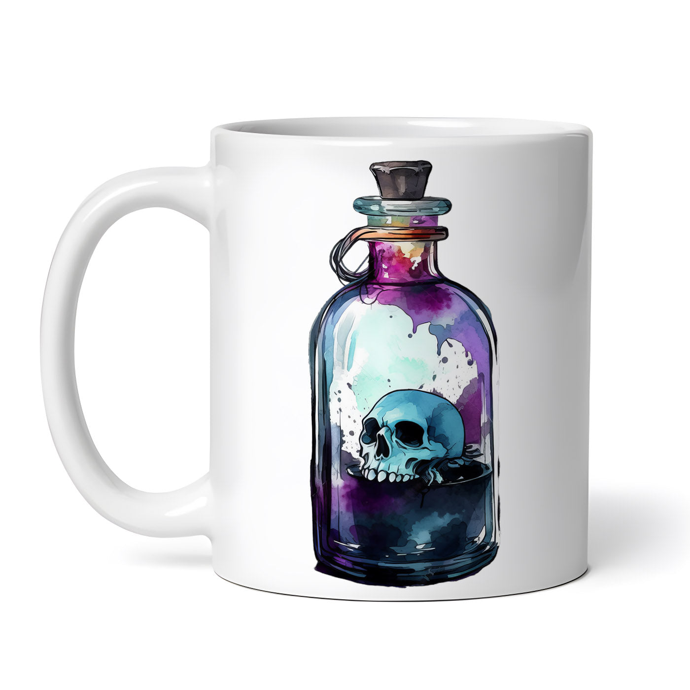 Cana ceramica, Halloween Sticla cu potiune magica albastra cu craniu, NO6283, 330 ml, Multicolor