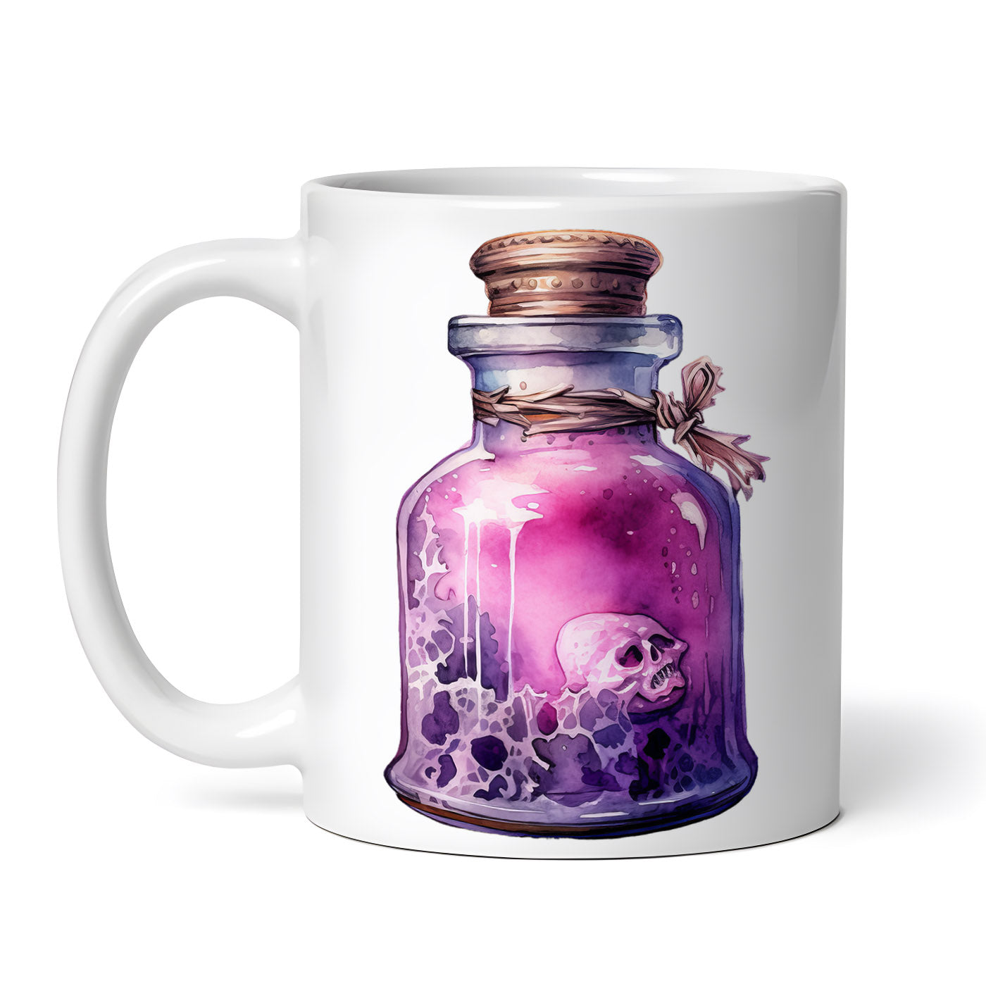 Cana ceramica, Halloween Sticla cu potiune magica mov cu craniu, NO4188, 330 ml, Multicolor
