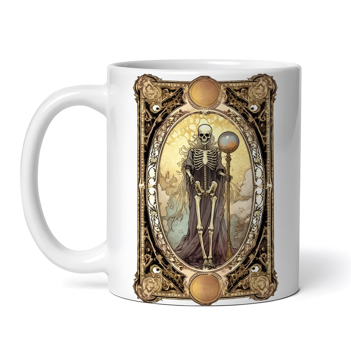 Cana ceramica, Halloween Tarot Scheletul cu sceptrul pamantului, NO3460, 330 ml, Multicolor