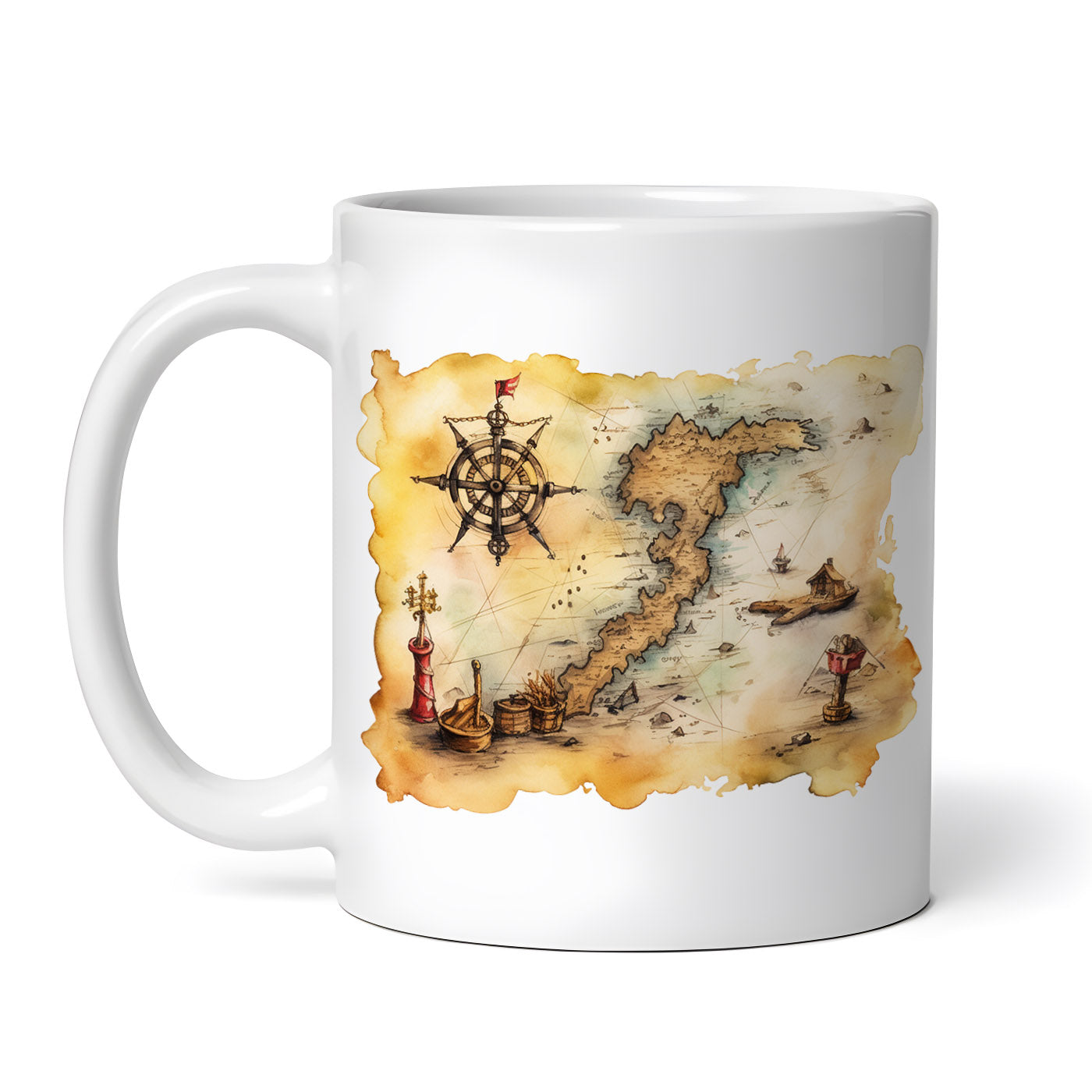 Cana ceramica, Harta piratilor, NO4043, 330 ml, Multicolor