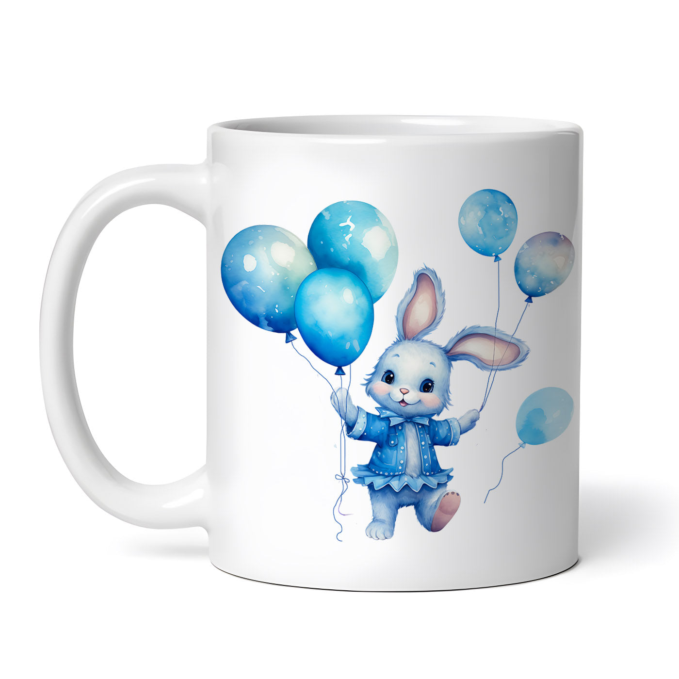 Cana ceramica, Iepurasul cu fustita albastra si baloane, NO782, 330 ml, Multicolor