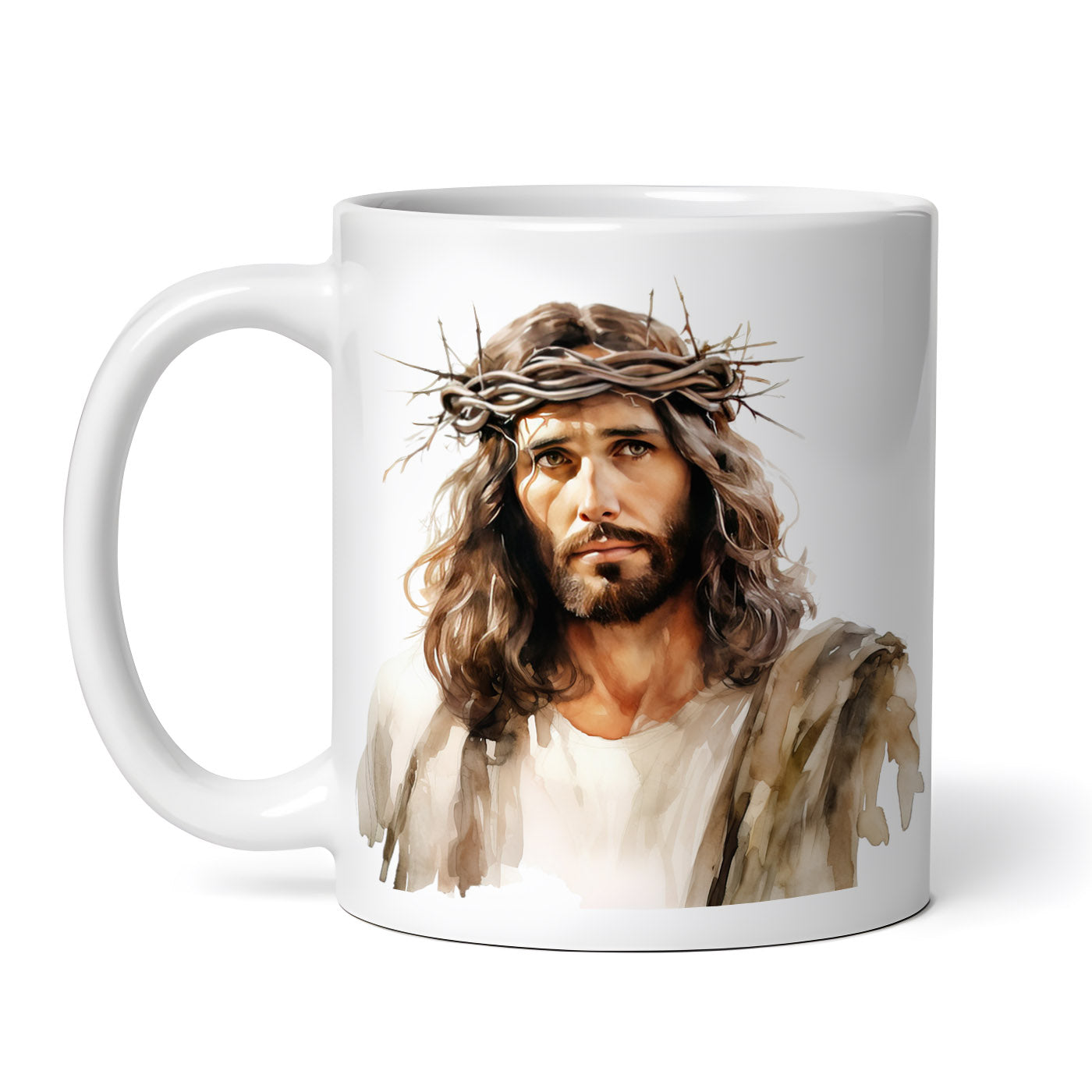 Cana ceramica, Iisus trist cu coroana de spini, NO3559, 330 ml, Multicolor