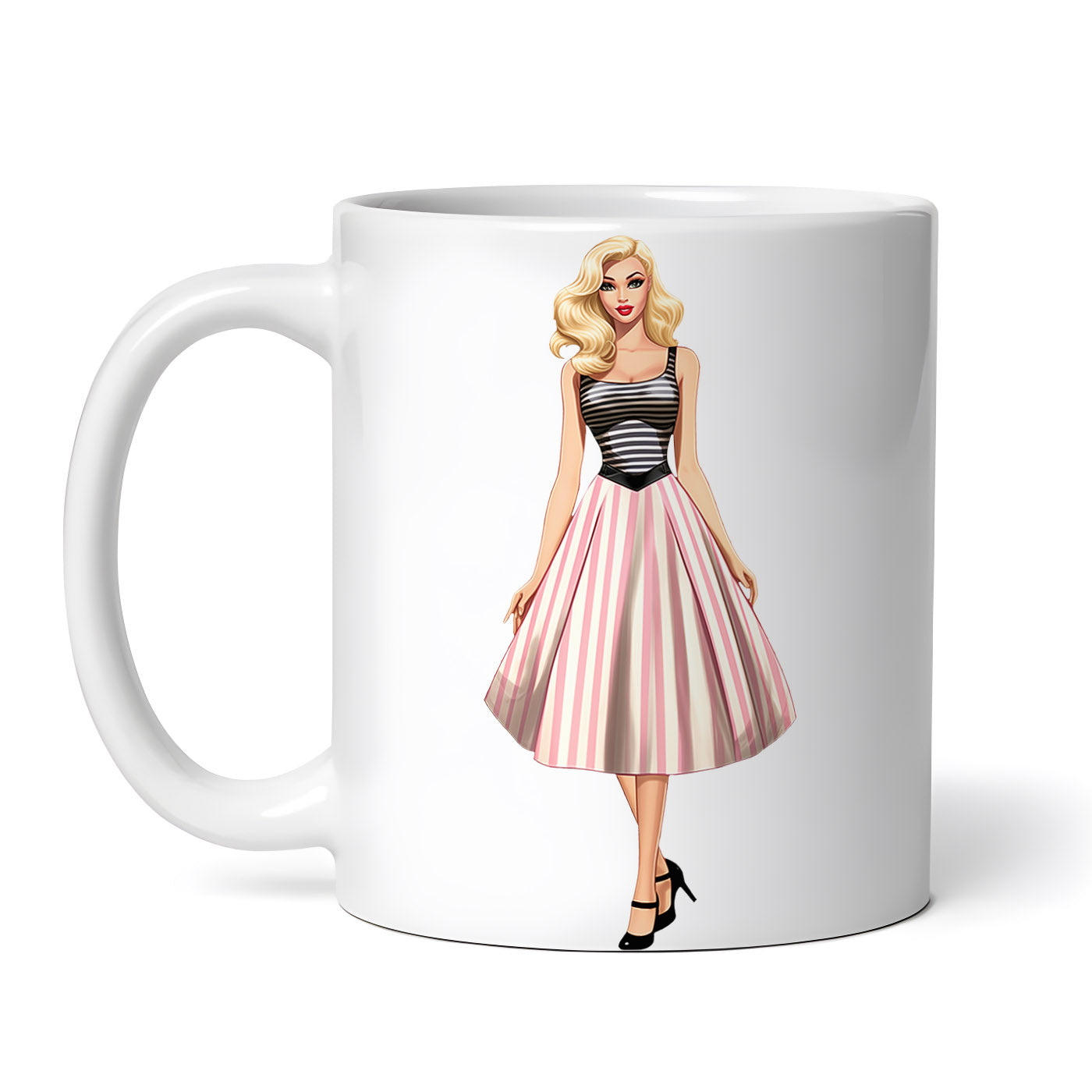 Cana ceramica, Imbracaminte de dama Polka, NO6439, 330 ml, Multicolor