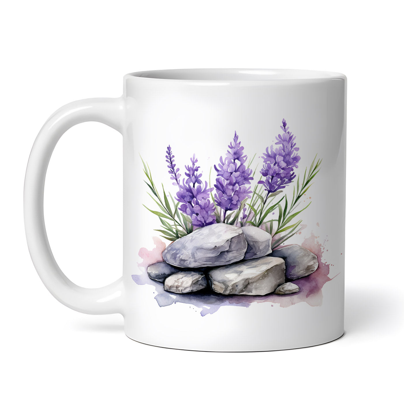 Cana ceramica, Lavanda si pietre, NO3981, 330 ml, Multicolor