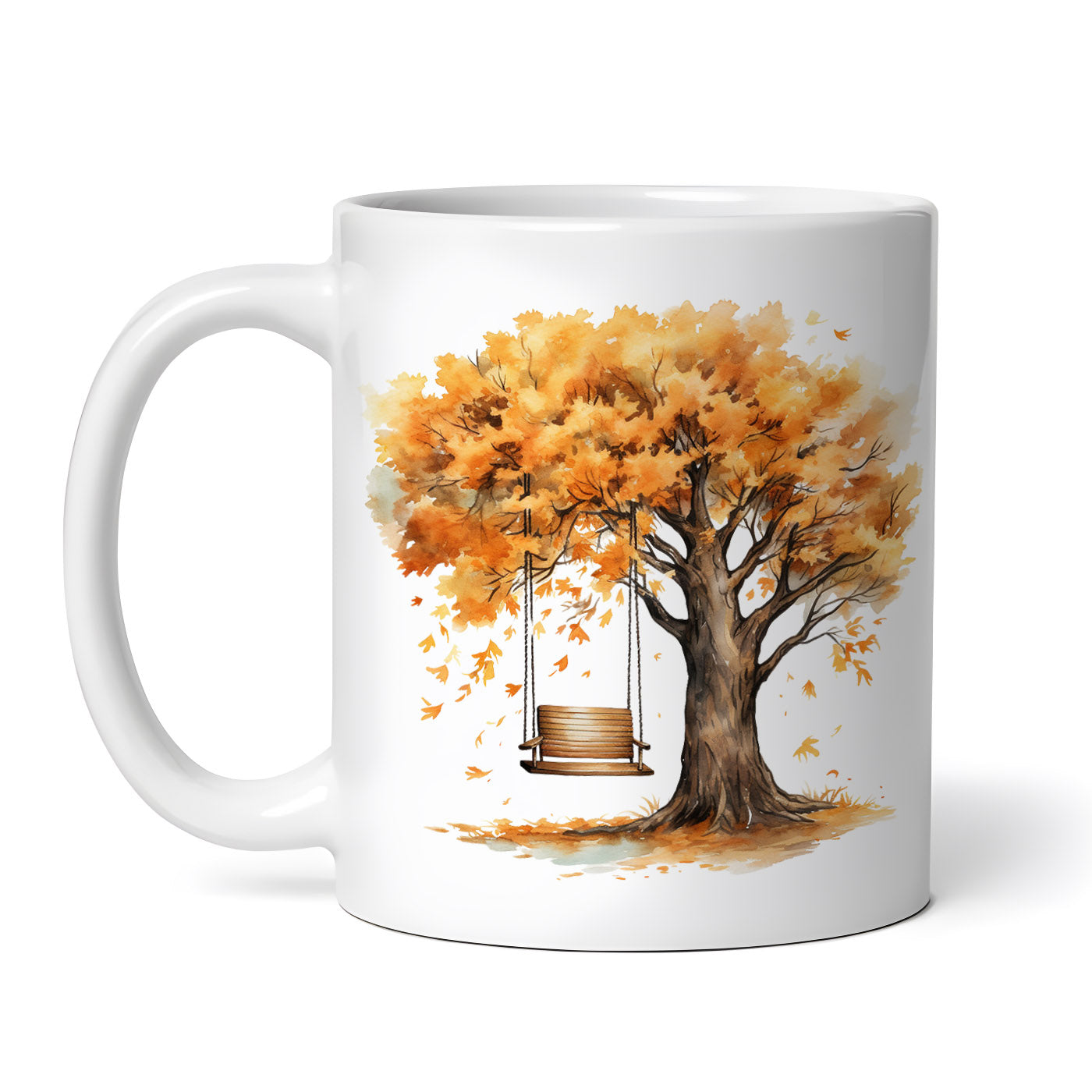 Cana ceramica, Leagan in copac cu frunzele cazand, NO5990, 330 ml, Multicolor