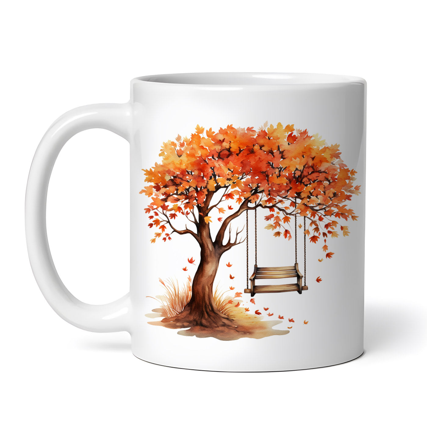 Cana ceramica, Leagan in copacul cu frunze portocalii, NO4336, 330 ml, Multicolor