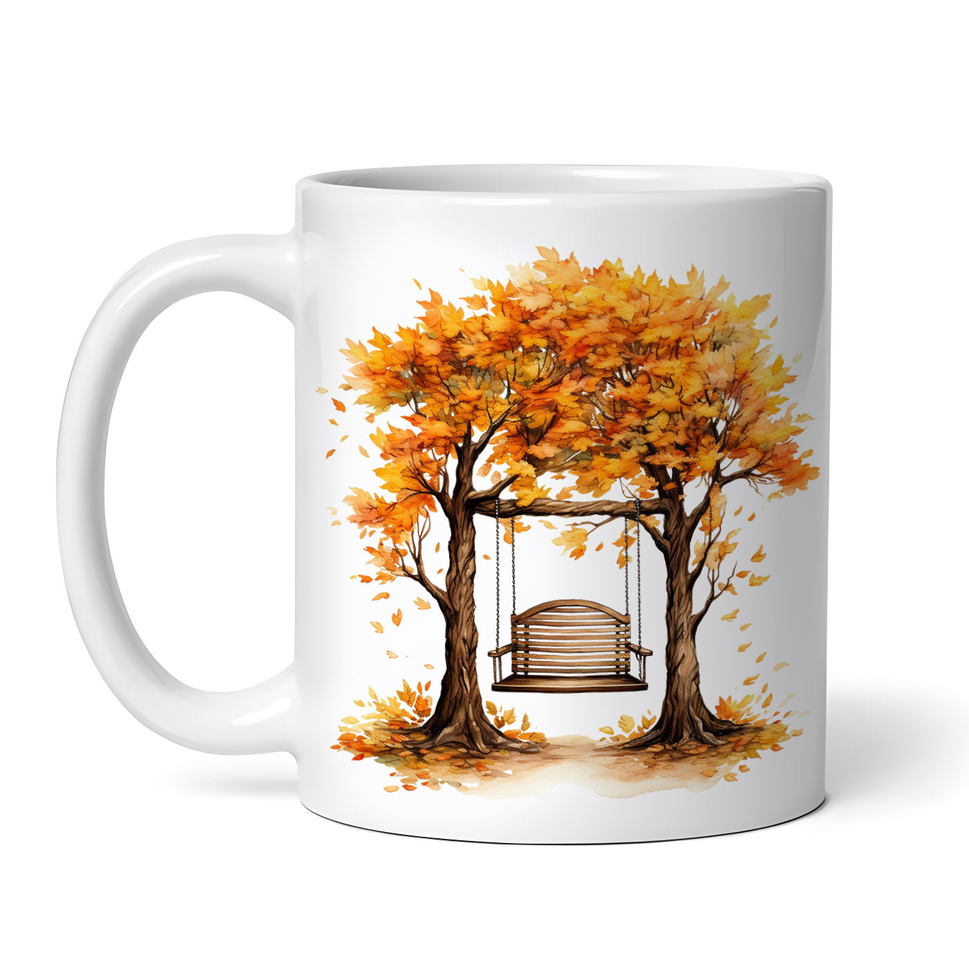 Cana ceramica, Leagan intre doi copaci de toamna, NO3489, 330 ml, Multicolor