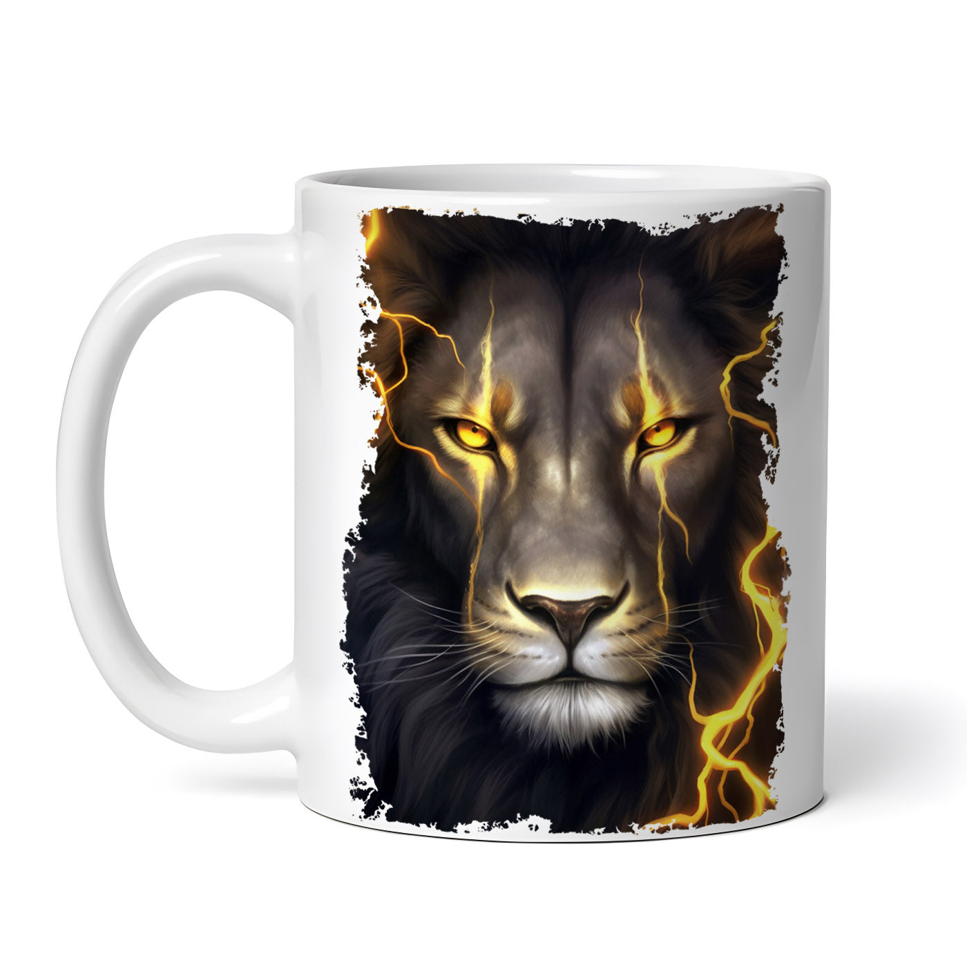 Cana ceramica, Leul cu fulgere in oghi, NO5689, 330 ml, Multicolor