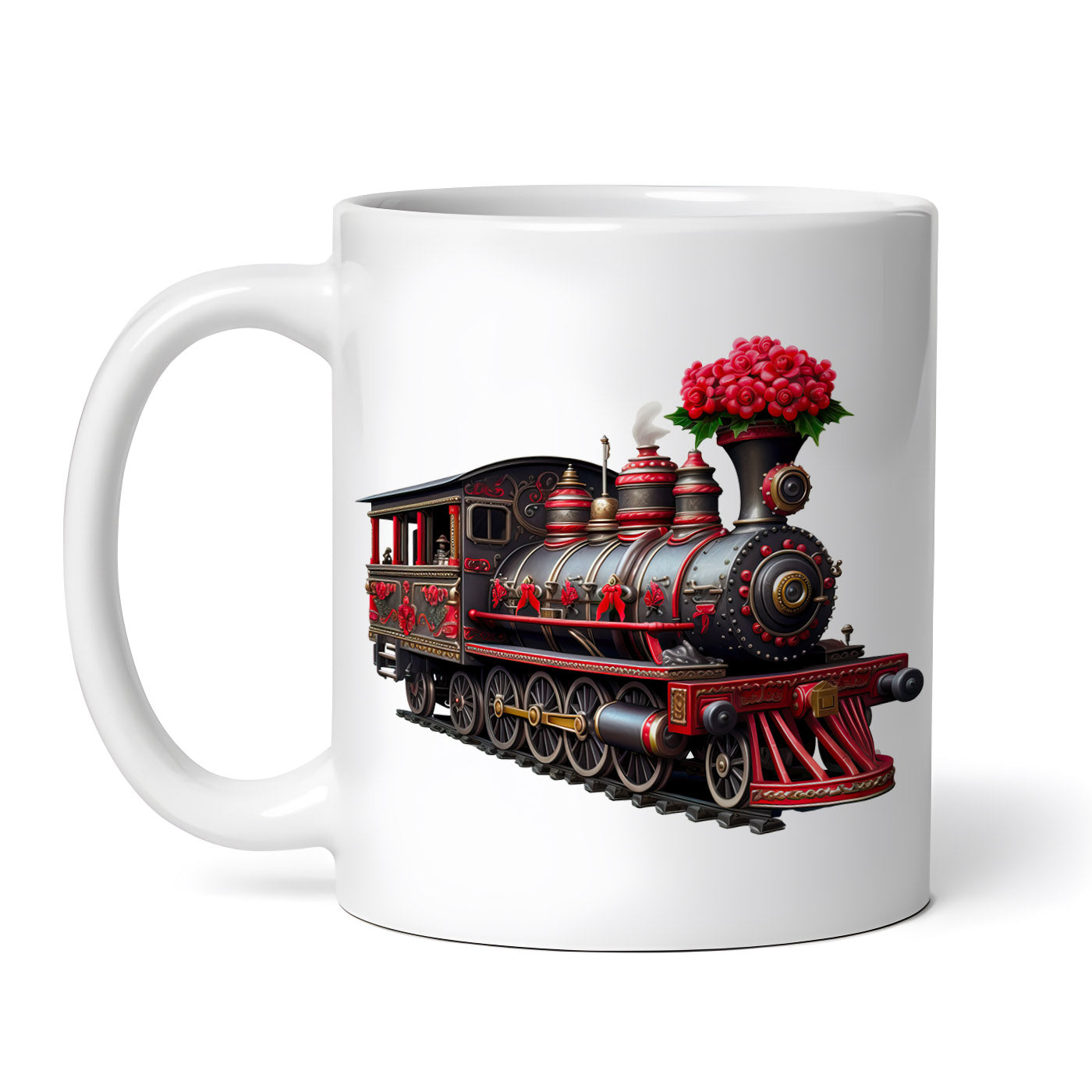 Cana ceramica, Locomotiva cu aburi negru cu rosu, NO4297, 330 ml, Multicolor