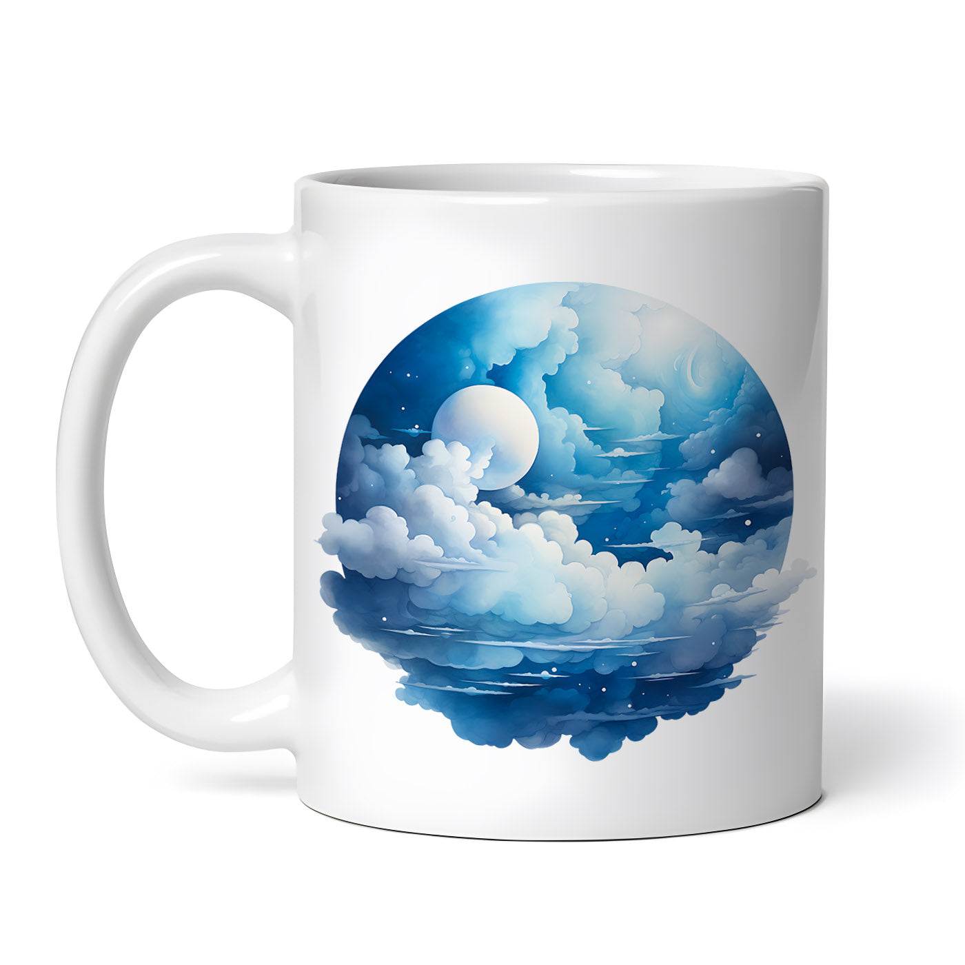 Cana ceramica, Luna si cerul albastru, NO1937, 330 ml, Multicolor
