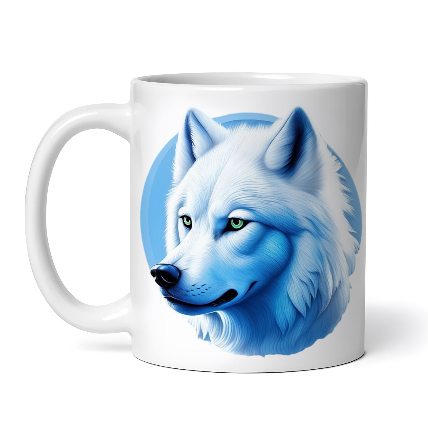 Cana ceramica, Lup alb, NO7074, 330 ml, Multicolor