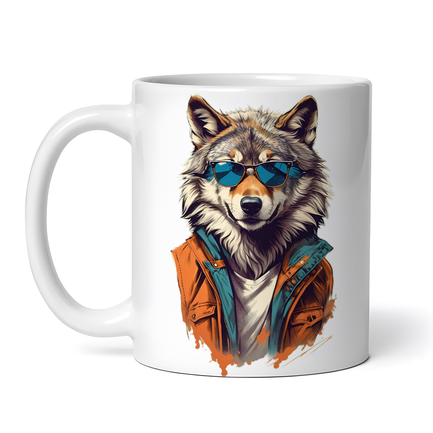 Cana ceramica, Lup cu jacheta si ochelari, NO7153, 330 ml, Multicolor