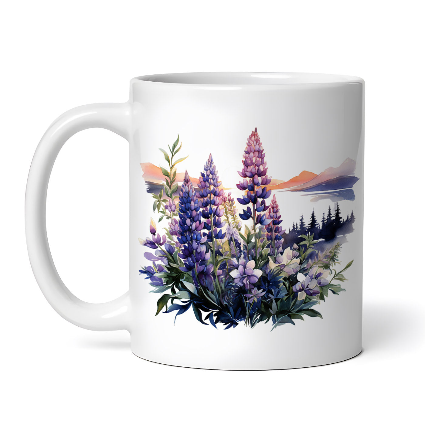 Cana ceramica, Lupin inflorit langa lac, NO4564, 330 ml, Multicolor