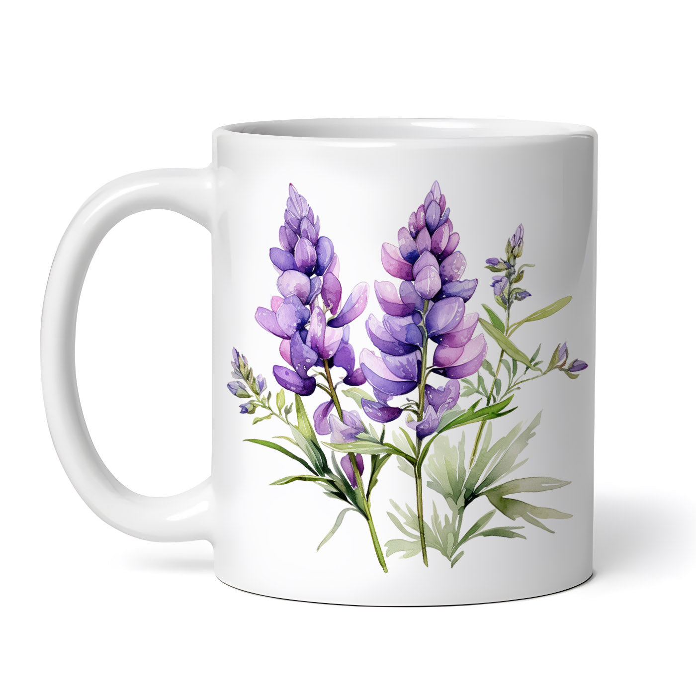 Cana ceramica, Lupin mov cu flori si bobocei, NO5730, 330 ml, Multicolor