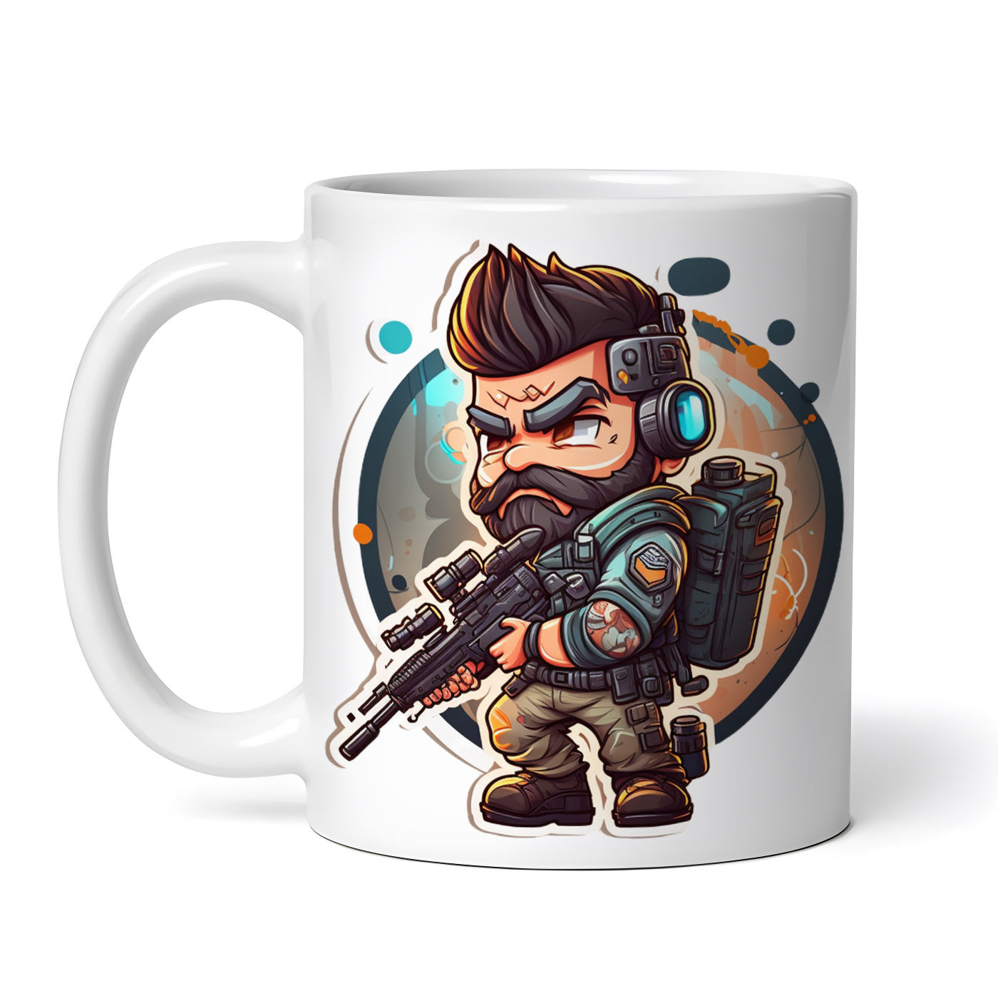 Cana ceramica, Luptator cu mitraliera, NO10776, 330 ml, Multicolor