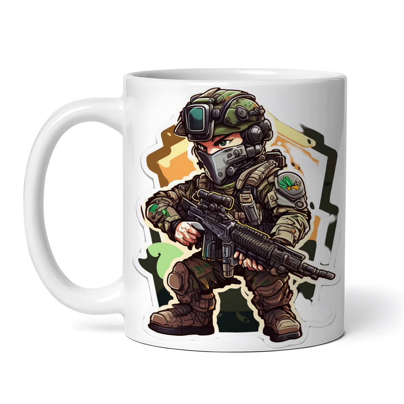 Cana ceramica, Luptator forte speciale cu mitraliera, NO10779, 330 ml, Multicolor