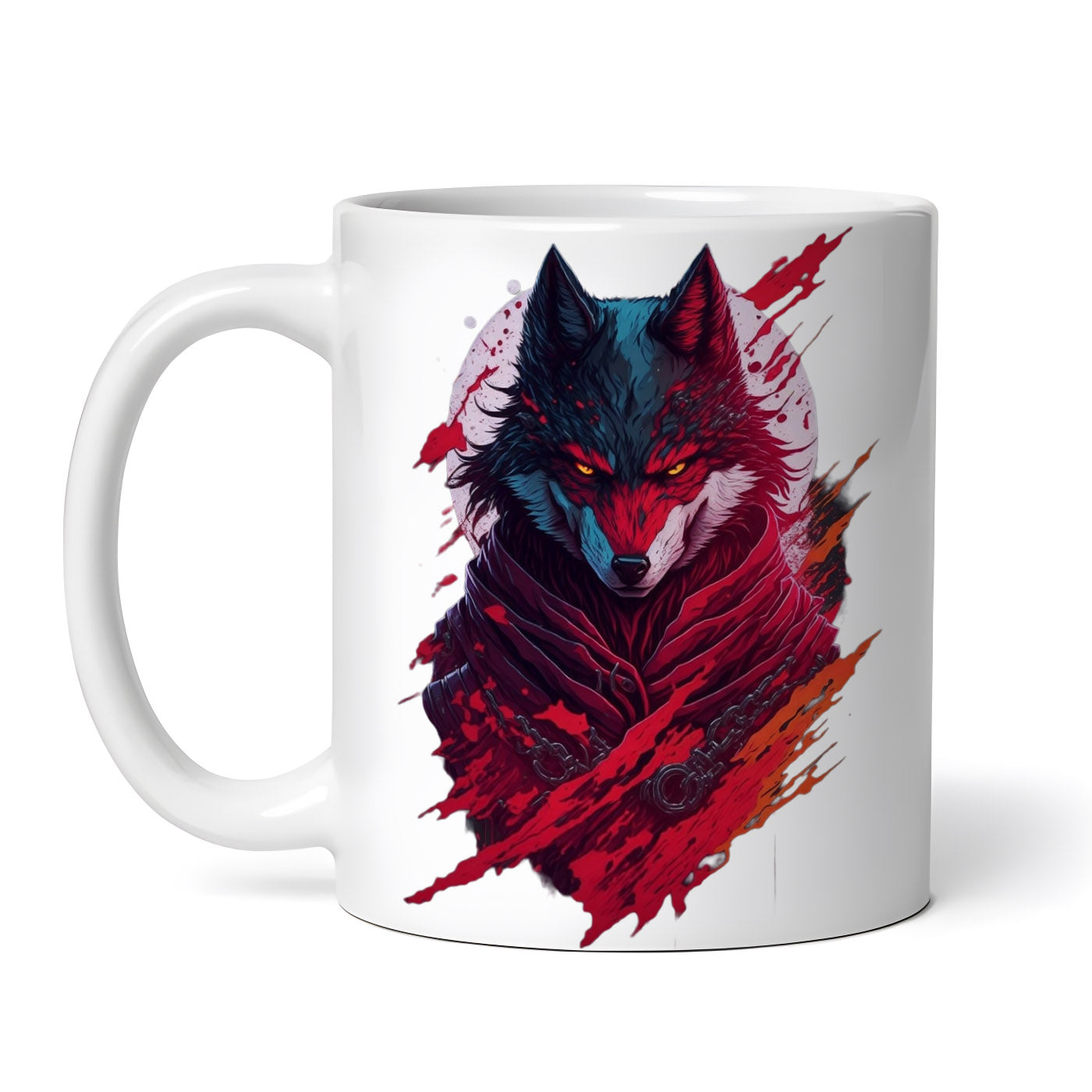 Cana ceramica, Lupul samurai, NO6663, 330 ml, Multicolor