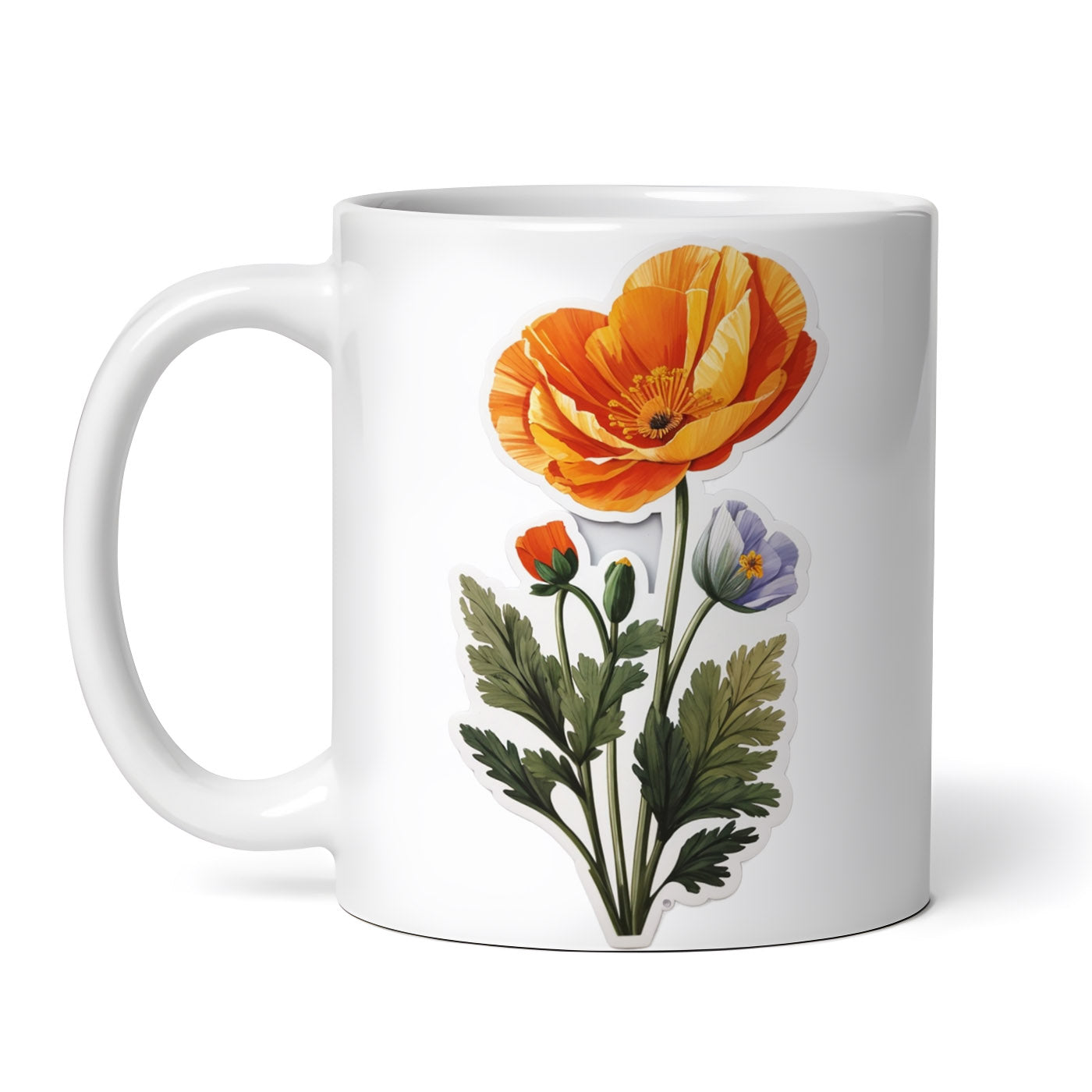 Cana ceramica, Mac californian cu frunze si boboci, NO7911, 330 ml, Multicolor