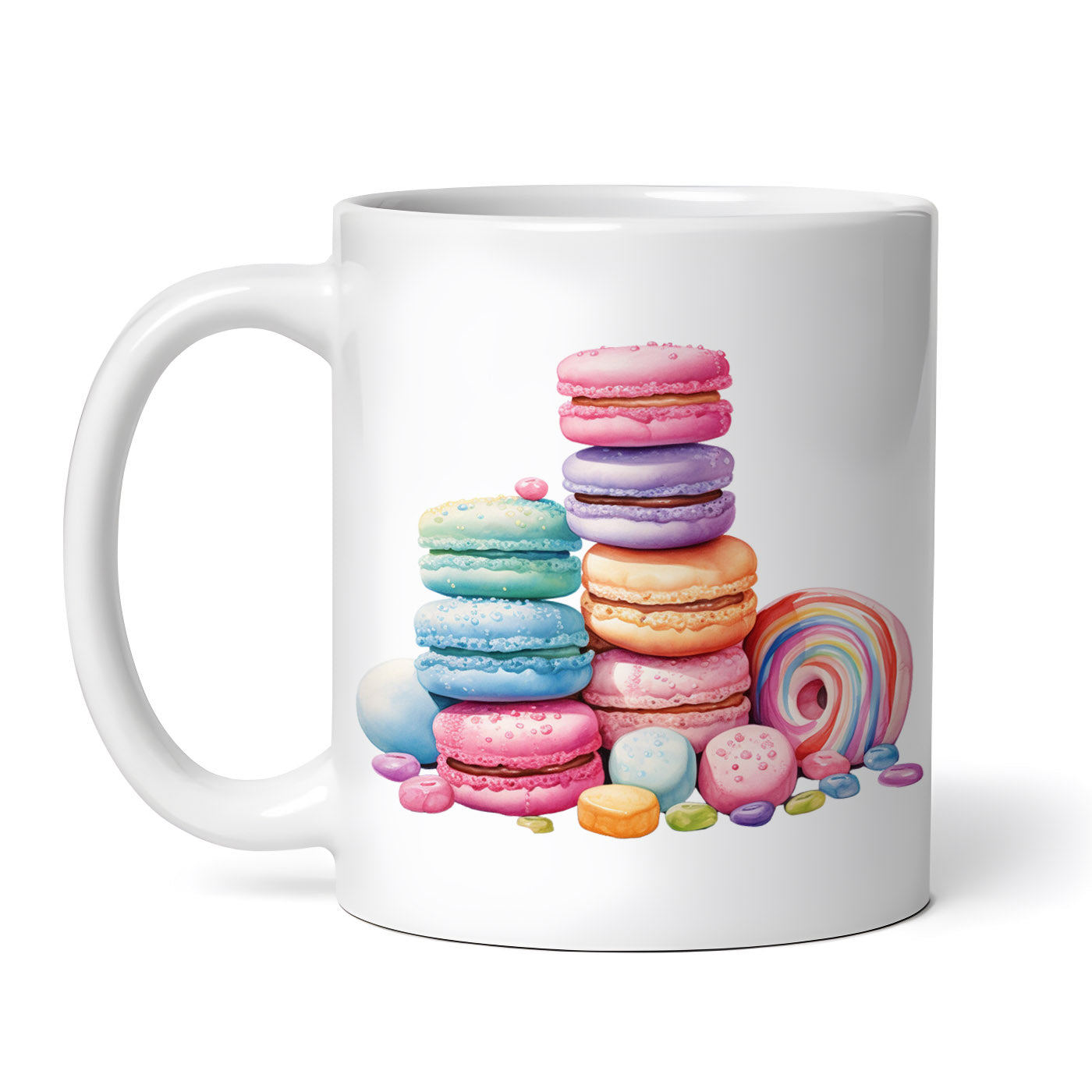Cana ceramica, Macarons asortate, NO5674, 330 ml, Multicolor