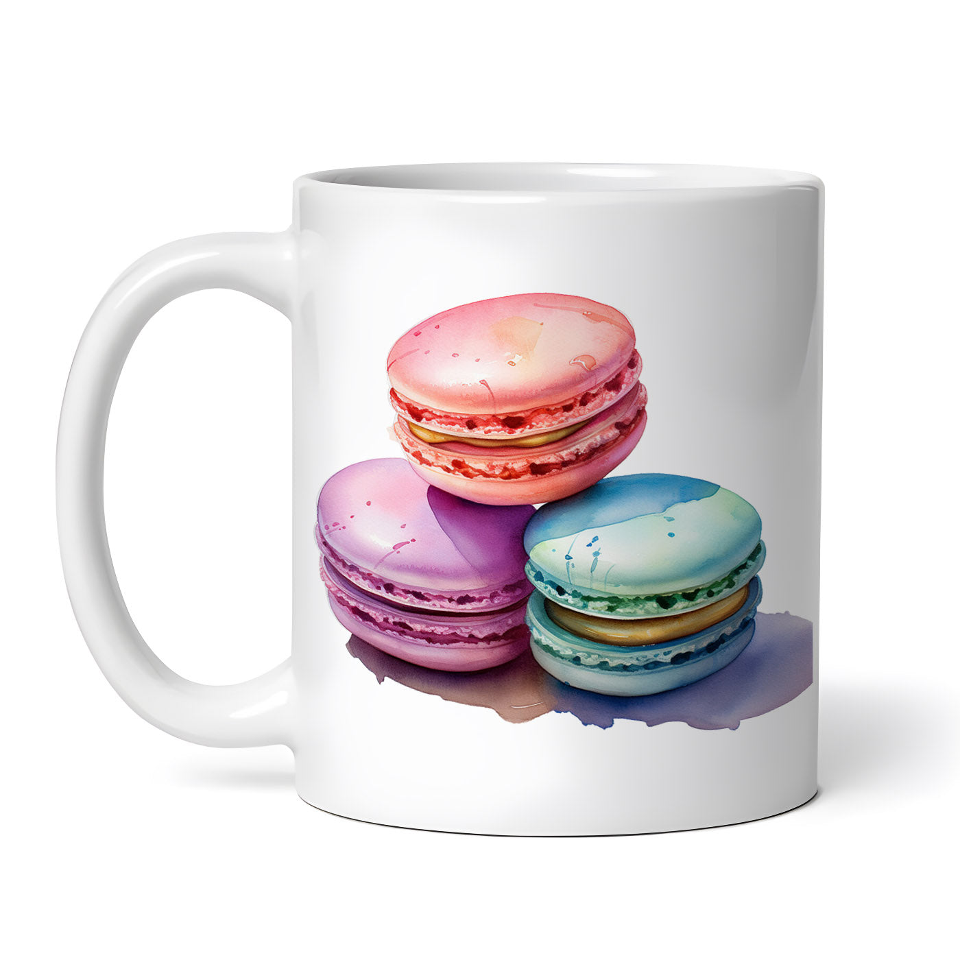Cana ceramica, Macarons roz mov verde, NO4582, 330 ml, Multicolor