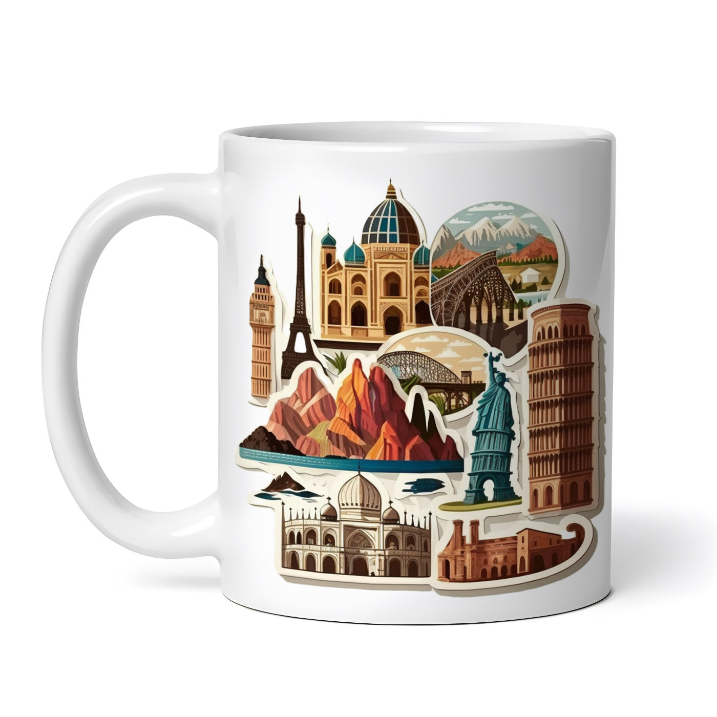 Cana ceramica, Magneti de calatorie cu simboluri de orase, NO10788, 330 ml, Multicolor