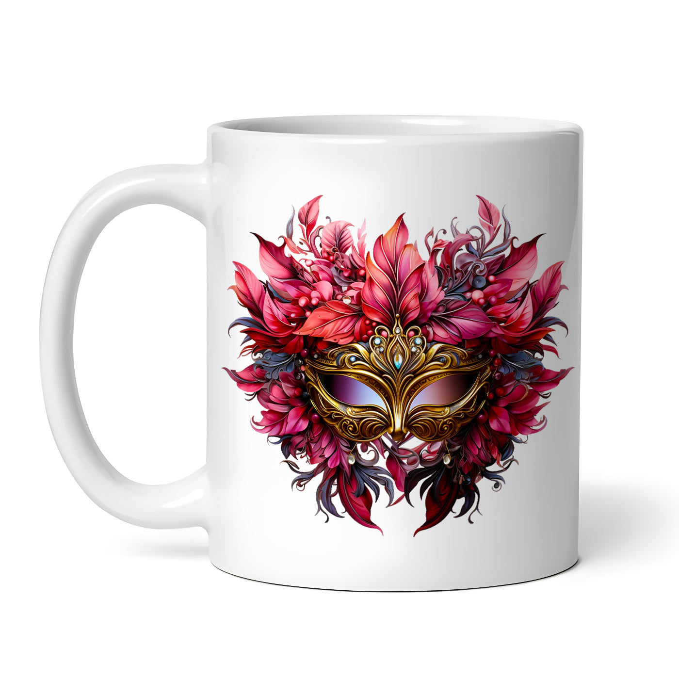 Cana ceramica, Masca aurie cu frunze rosii, NO3589, 330 ml, Multicolor