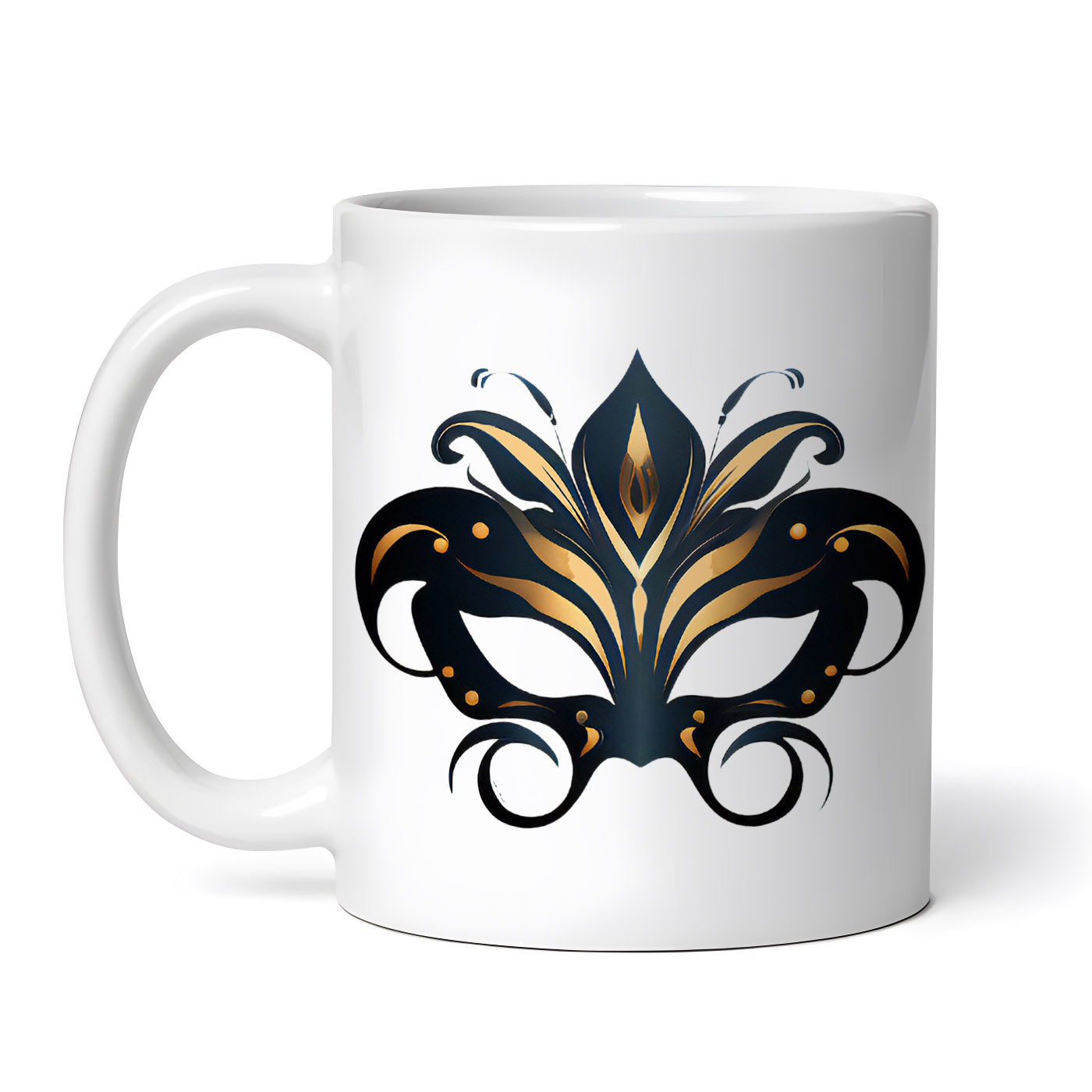 Cana ceramica, Masca de carnaval Pana de corb, NO1687, 330 ml, Multicolor