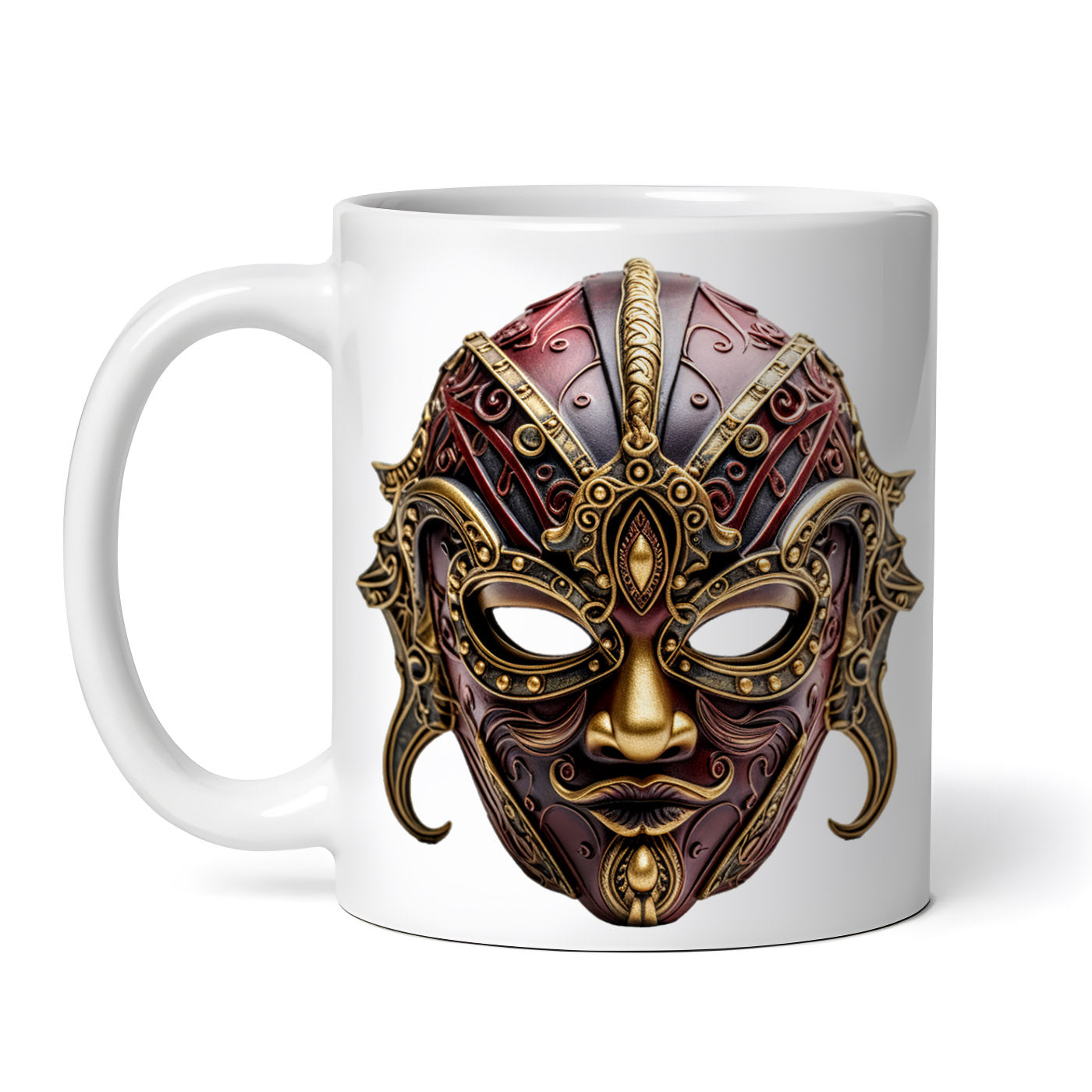 Cana ceramica, Masca venetiana barbat cu mustata, NO393, 330 ml, Multicolor