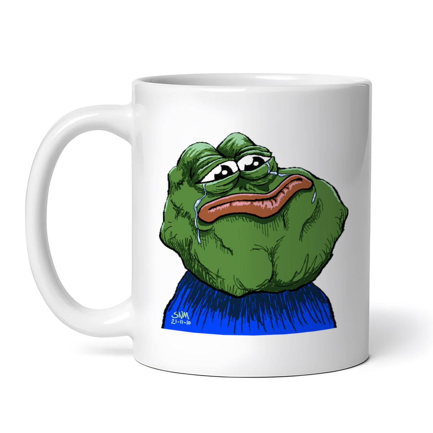 Cana ceramica, Meme Pepe the Frog fata suparata cu lacrimi, NO10875, 330 ml, Multicolor
