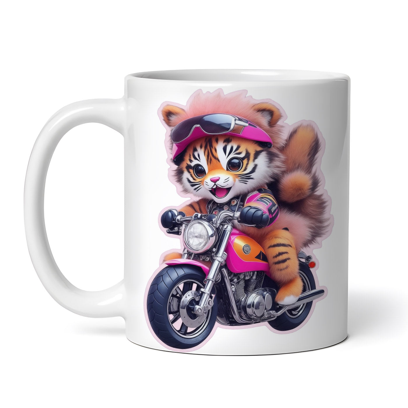 Cana ceramica, Micul tigru pe motor, NO7049, 330 ml, Multicolor