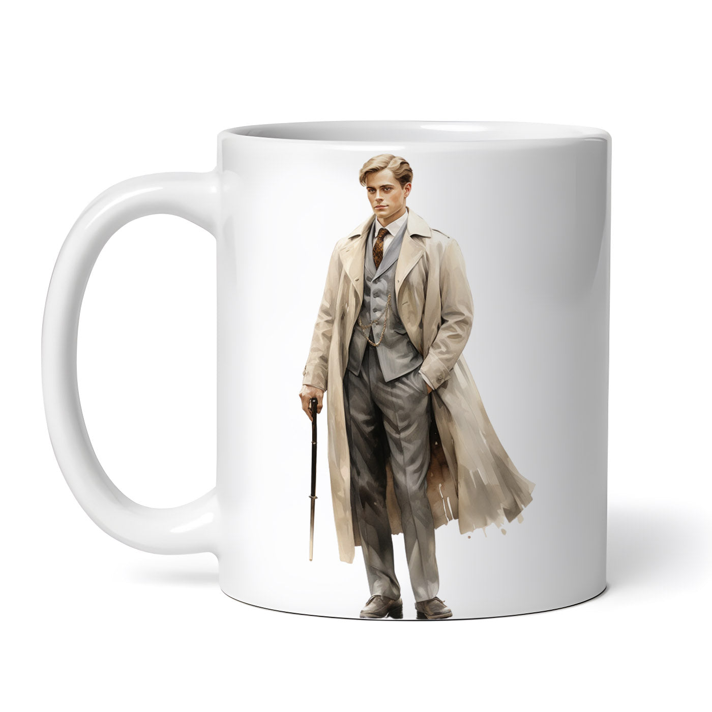 Cana ceramica, Moda victoriana barbat in costum gri, NO5242, 330 ml, Multicolor