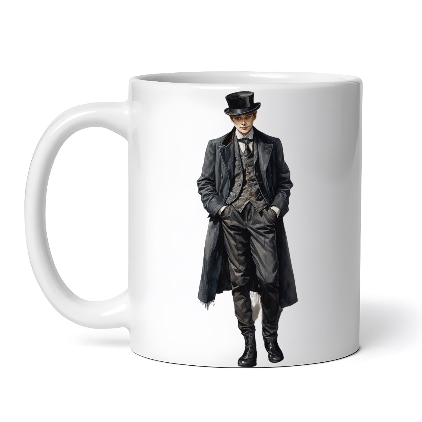 Cana ceramica, Moda victoriana barbat in costum negru cu joben, NO1131, 330 ml, Multicolor